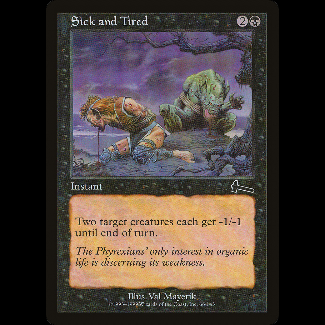 MTG Fastidio (Sick and Tired) Urza's LegacyTwo target creatures each get -1/-1 until end of turn.