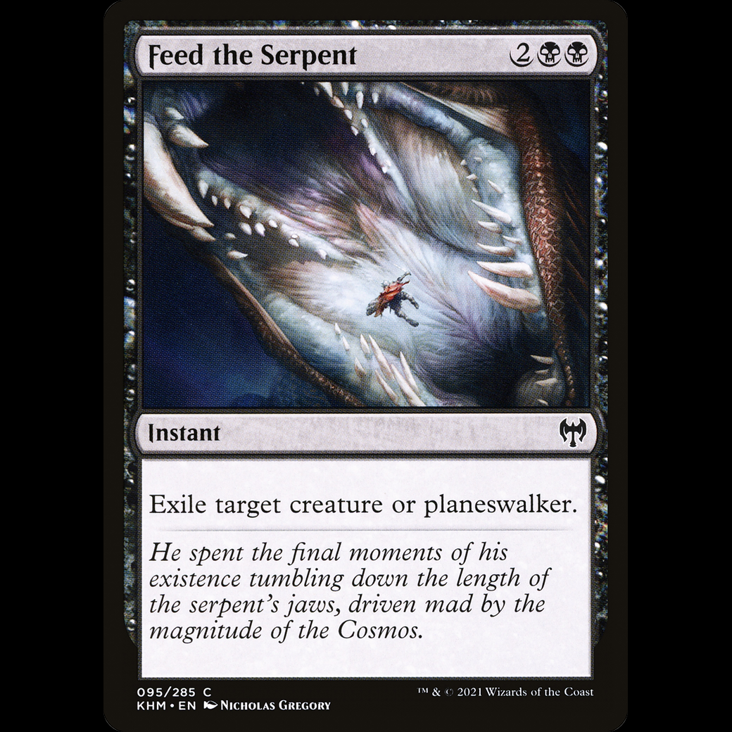 MTG Feed the Serpent Kaldheim khm#95Exile target creature or planeswalker.
