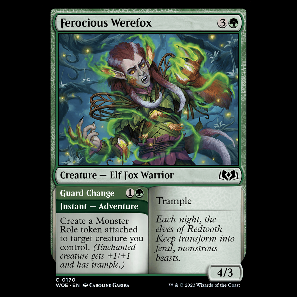 MTG Ferocious Werefox // Guard Change Wilds of Eldraine