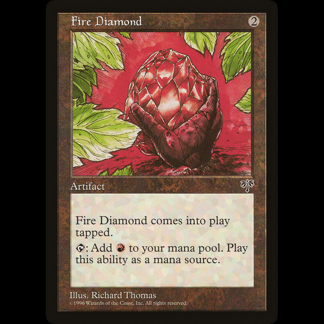 MTG Fire Diamond MirageFire Diamond enters the battlefield tapped. {T}: Add {R}.