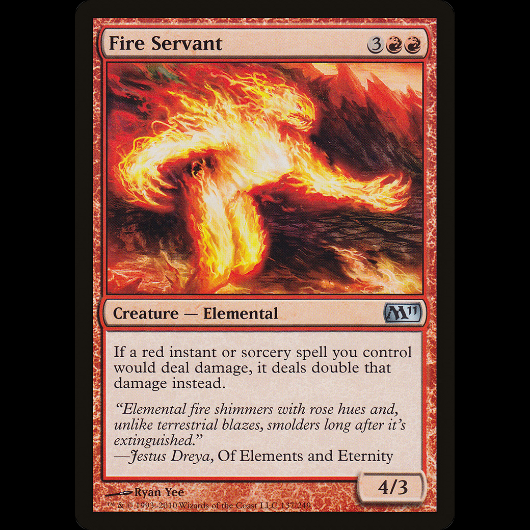 If a red instant or sorcery spell you control would deal damage, it deals double that damage instead.