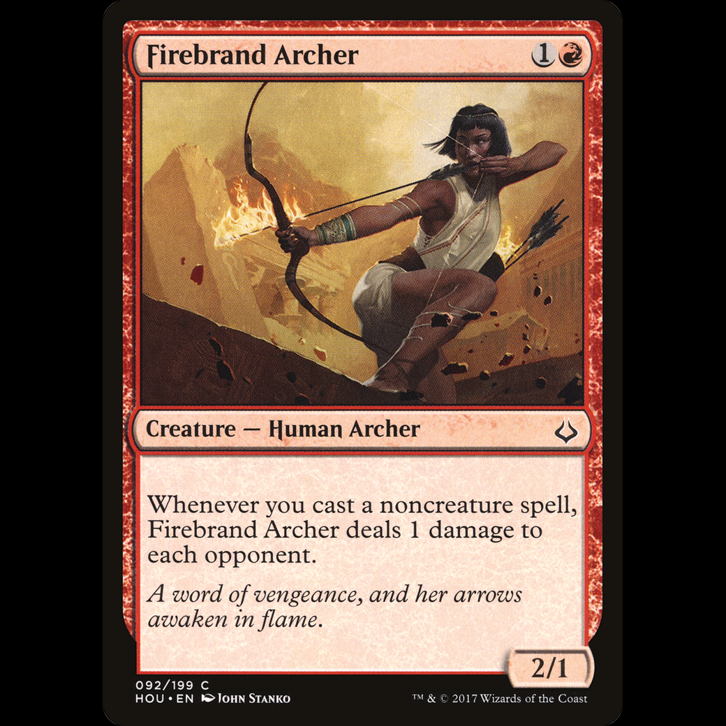 Whenever you cast a noncreature spell, Firebrand Archer deals 1 damage to each opponent.