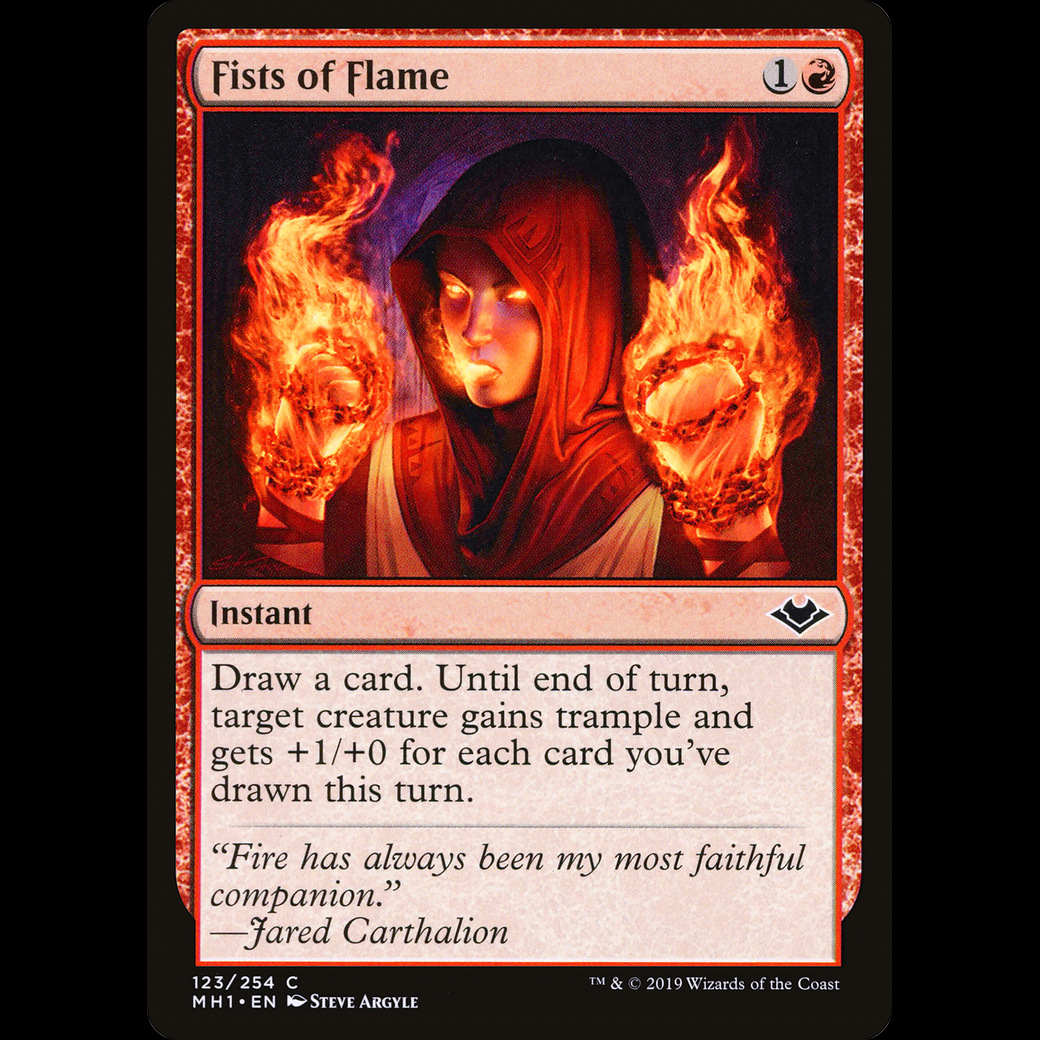 Draw a card. Until end of turn, target creature gains trample and gets +1/+0 for each card you've drawn this turn. (A creature with trample can deal excess combat damage to the player or planeswalker it's attacking.)