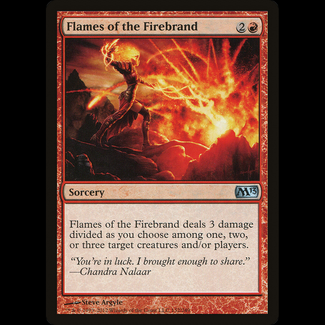 Flames of the Firebrand deals 3 damage divided as you choose among one, two, or three targets.