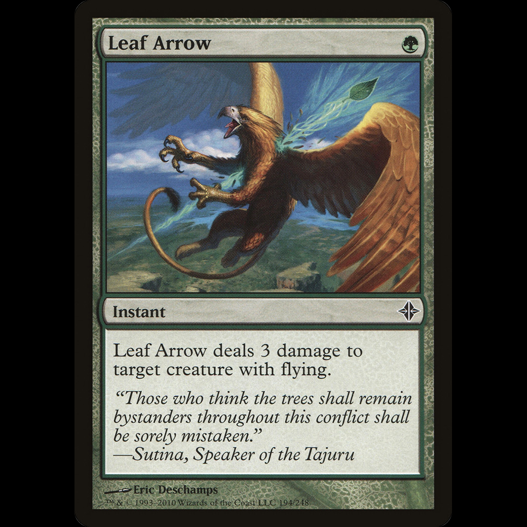 Leaf Arrow deals 3 damage to target creature with flying.