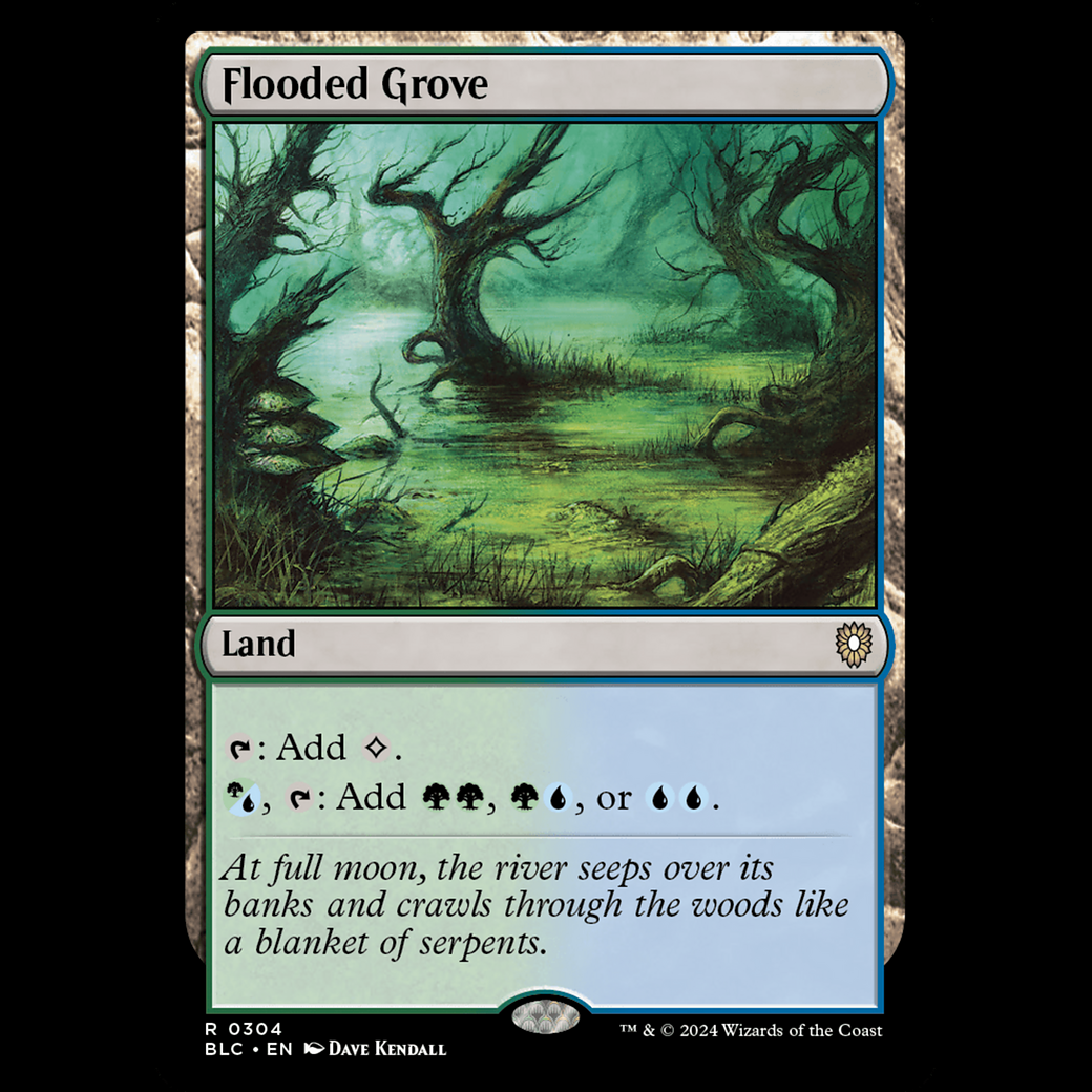 MTG Flooded Grove Bloomburrow Commander blc#304: Add . G/U, : Add , , or .