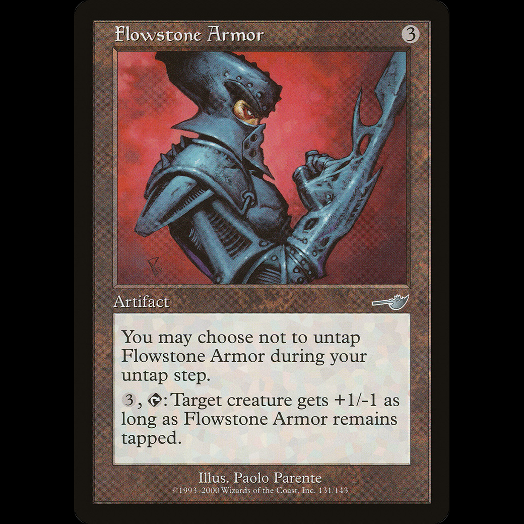 , : Target creature gets +1/-1 for as long as Flowstone Armor remains tapped.