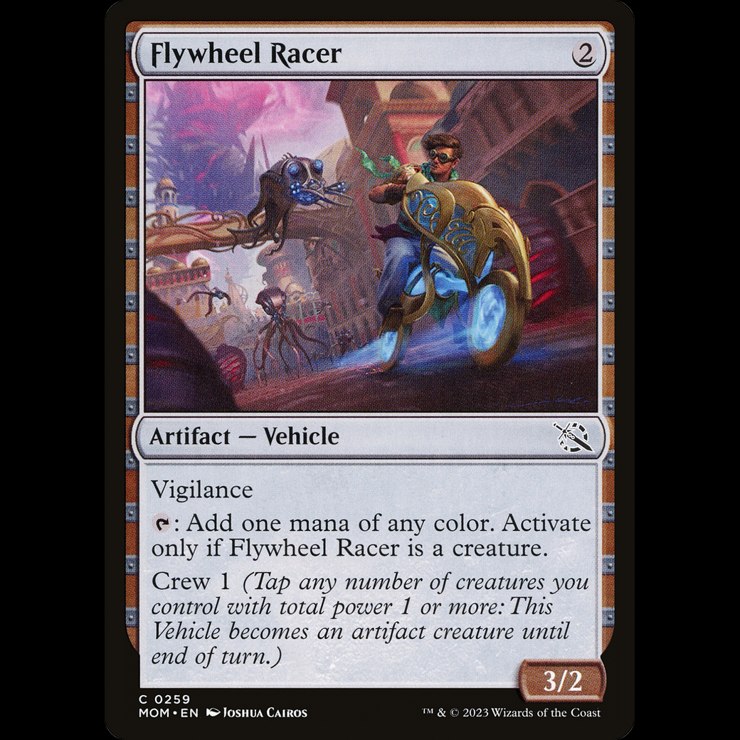 : Add one mana of any color. Activate only if Flywheel Racer is a creature.