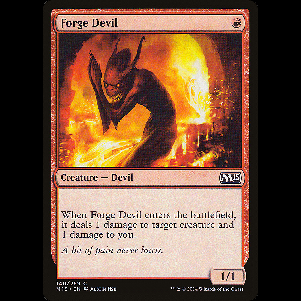 When Forge Devil enters the battlefield, it deals 1 damage to target creature and 1 damage to you.