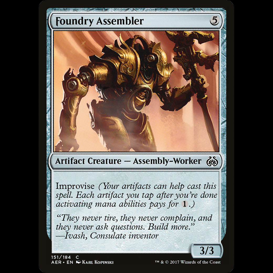 Improvise (Your artifacts can help cast this spell. Each artifact you tap after you're done activating mana abilities pays for .)