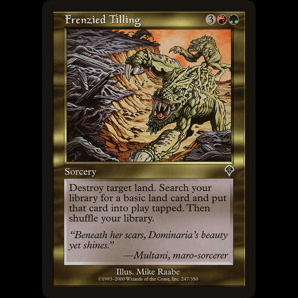 Destroy target land. Search your library for a basic land card, put that card onto the battlefield tapped, then shuffle.