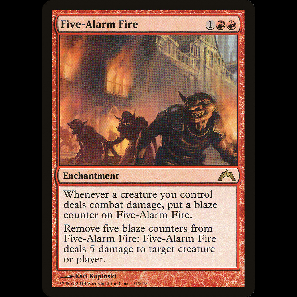 Remove five blaze counters from Five-Alarm Fire: It deals 5 damage to any target.