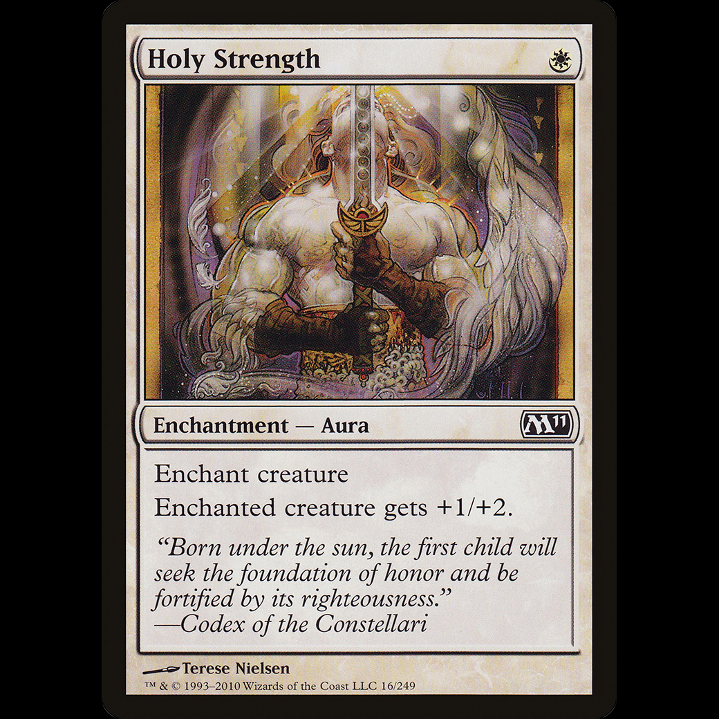 MTG Fuerza sagrada (Holy Strength) Magic 2011Enchant creature Enchanted creature gets +1/+2.