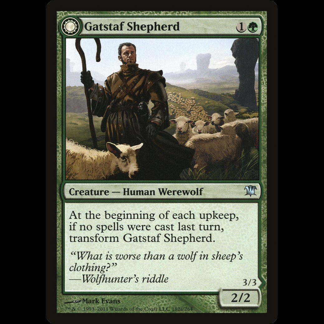 At the beginning of each upkeep, if no spells were cast last turn, transform Gatstaf Shepherd.