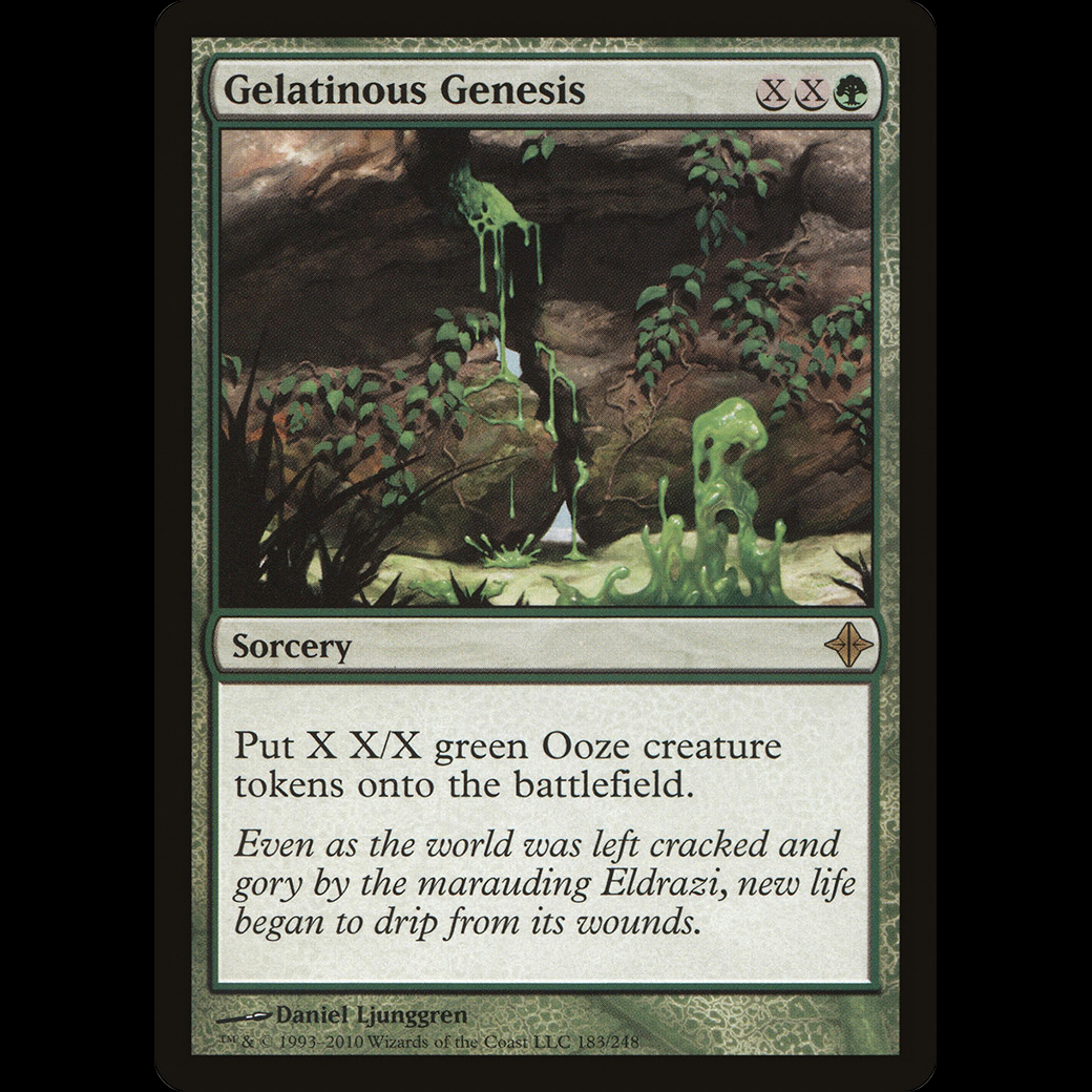 MTG Gelatinous Genesis Rise of the EldraziCreate X X/X green Ooze creature tokens.