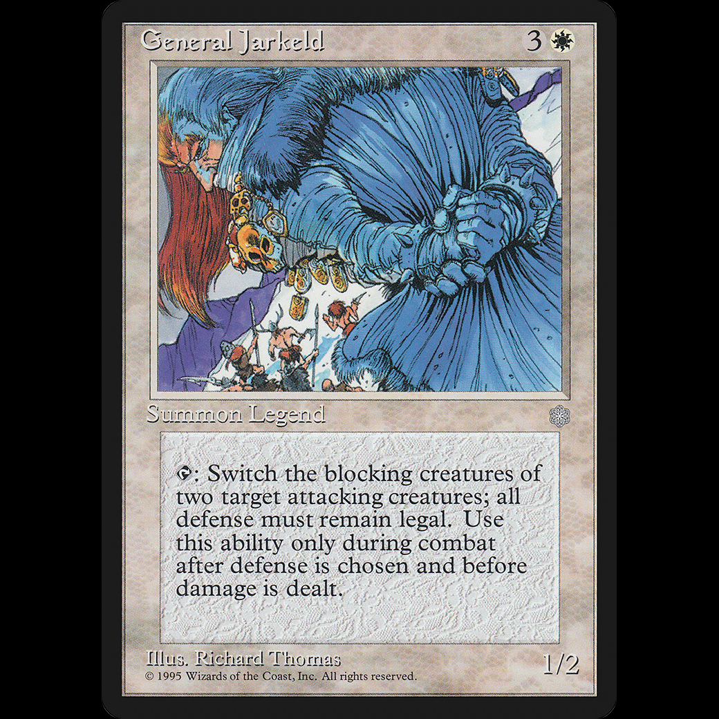 : Choose two target blocked attacking creatures. If each of those creatures could be blocked by all creatures that the other is blocked by, each creature that's blocking exactly one of those attacking creatures stops blocking it and is blocking the other attacking creature. Activate only during the declare blockers step.