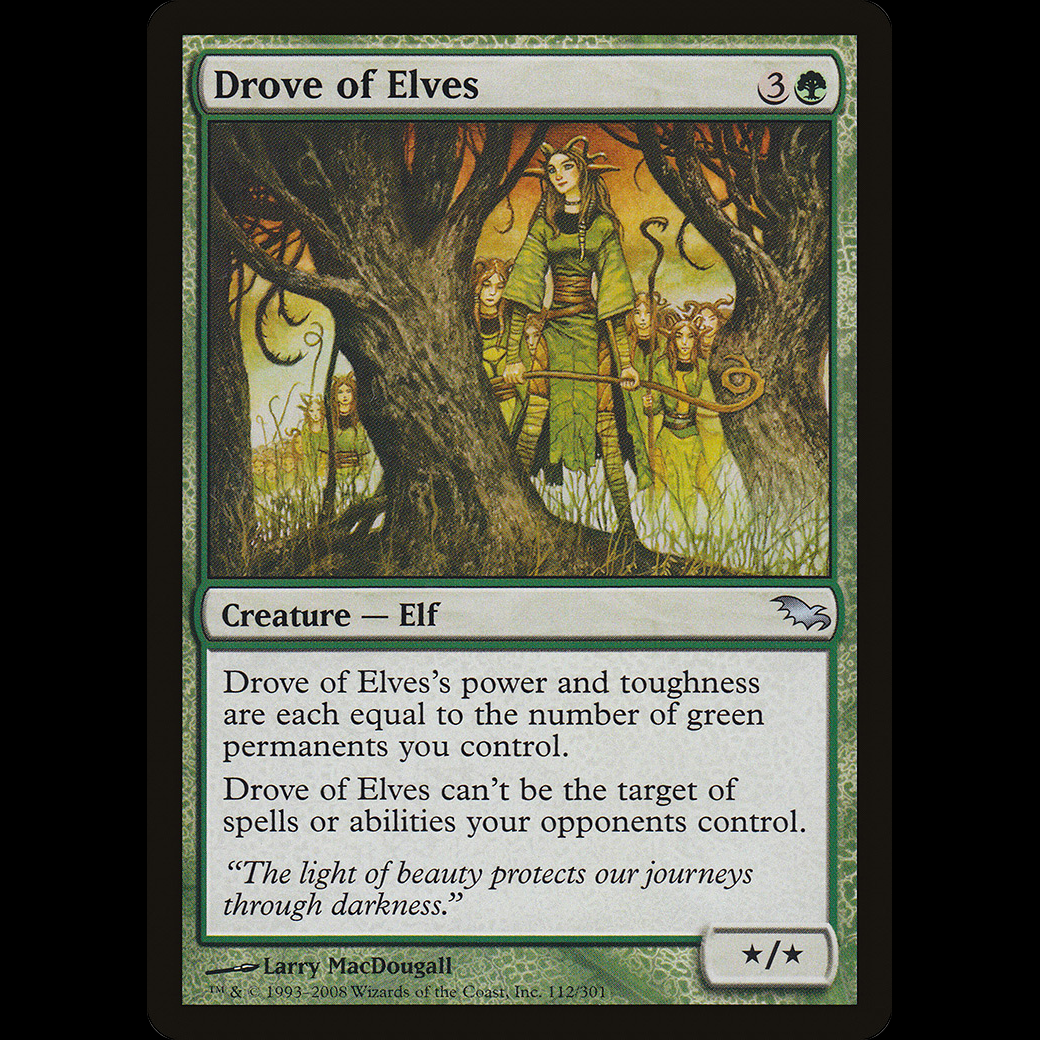 Drove of Elves's power and toughness are each equal to the number of green permanents you control.