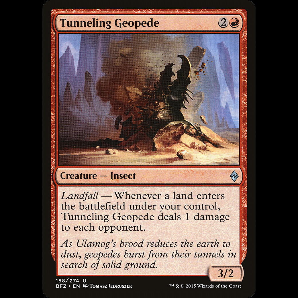 Landfall — Whenever a land enters the battlefield under your control, Tunneling Geopede deals 1 damage to each opponent.