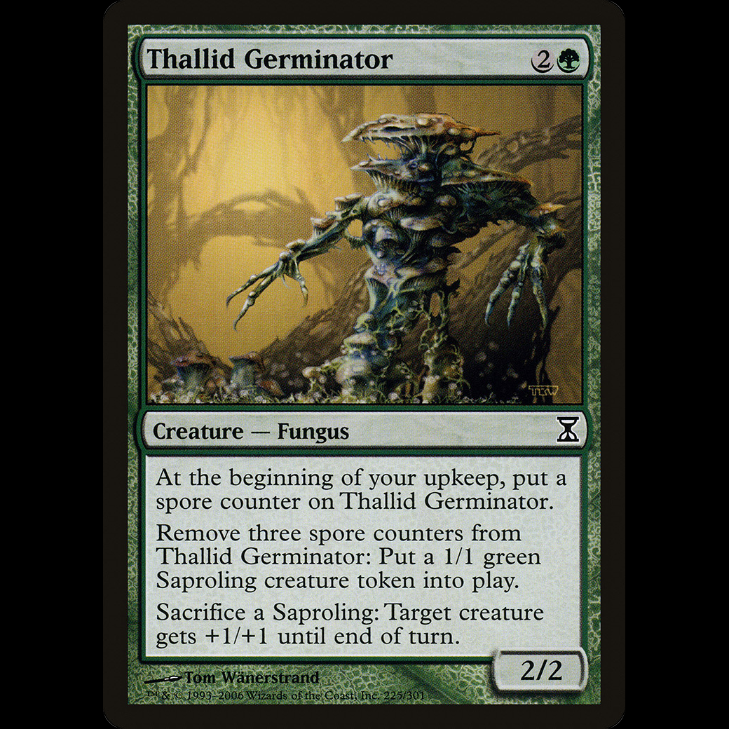 At the beginning of your upkeep, put a spore counter on Thallid Germinator.