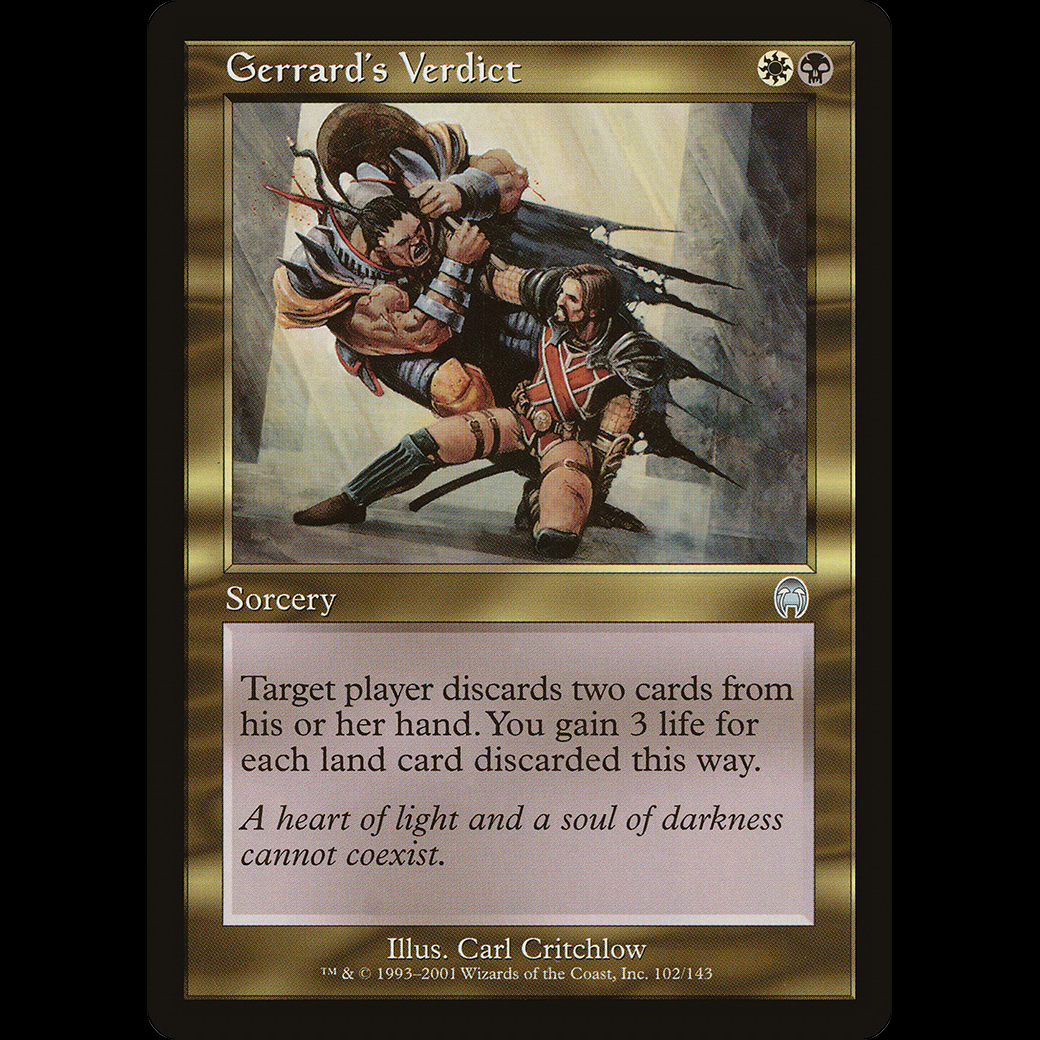 Target player discards two cards. You gain 3 life for each land card discarded this way.