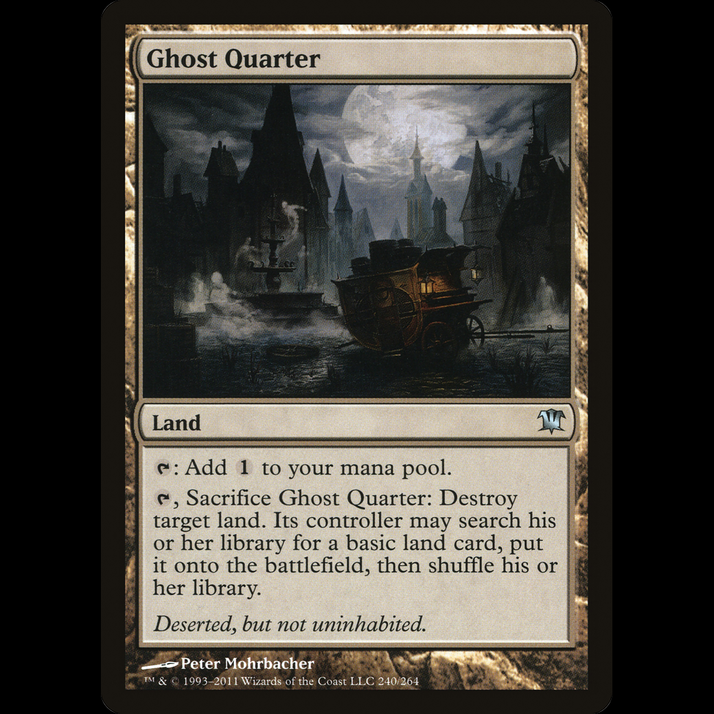 , Sacrifice Ghost Quarter: Destroy target land. Its controller may search their library for a basic land card, put it onto the battlefield, then shuffle.