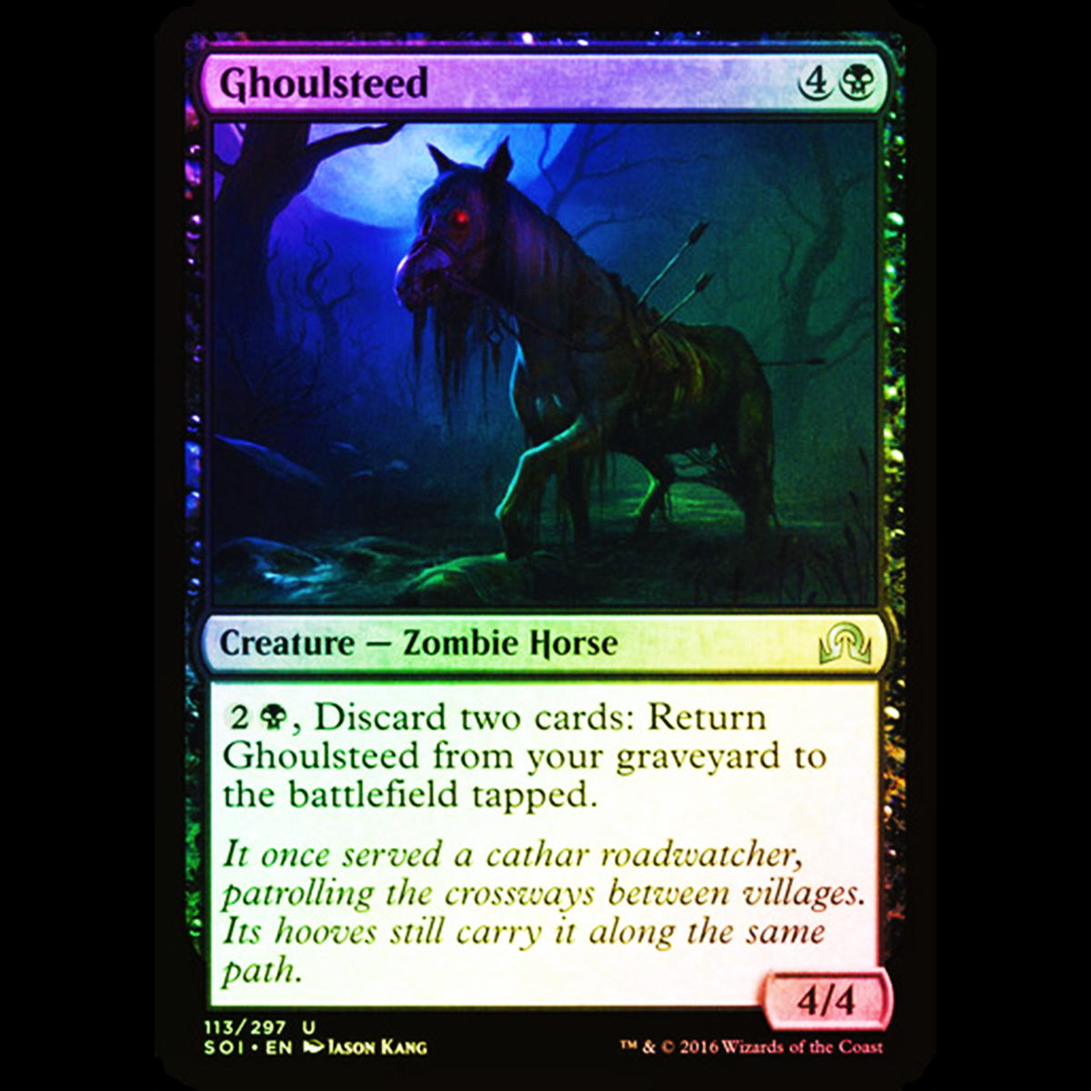 , Discard two cards: Return Ghoulsteed from your graveyard to the battlefield tapped.