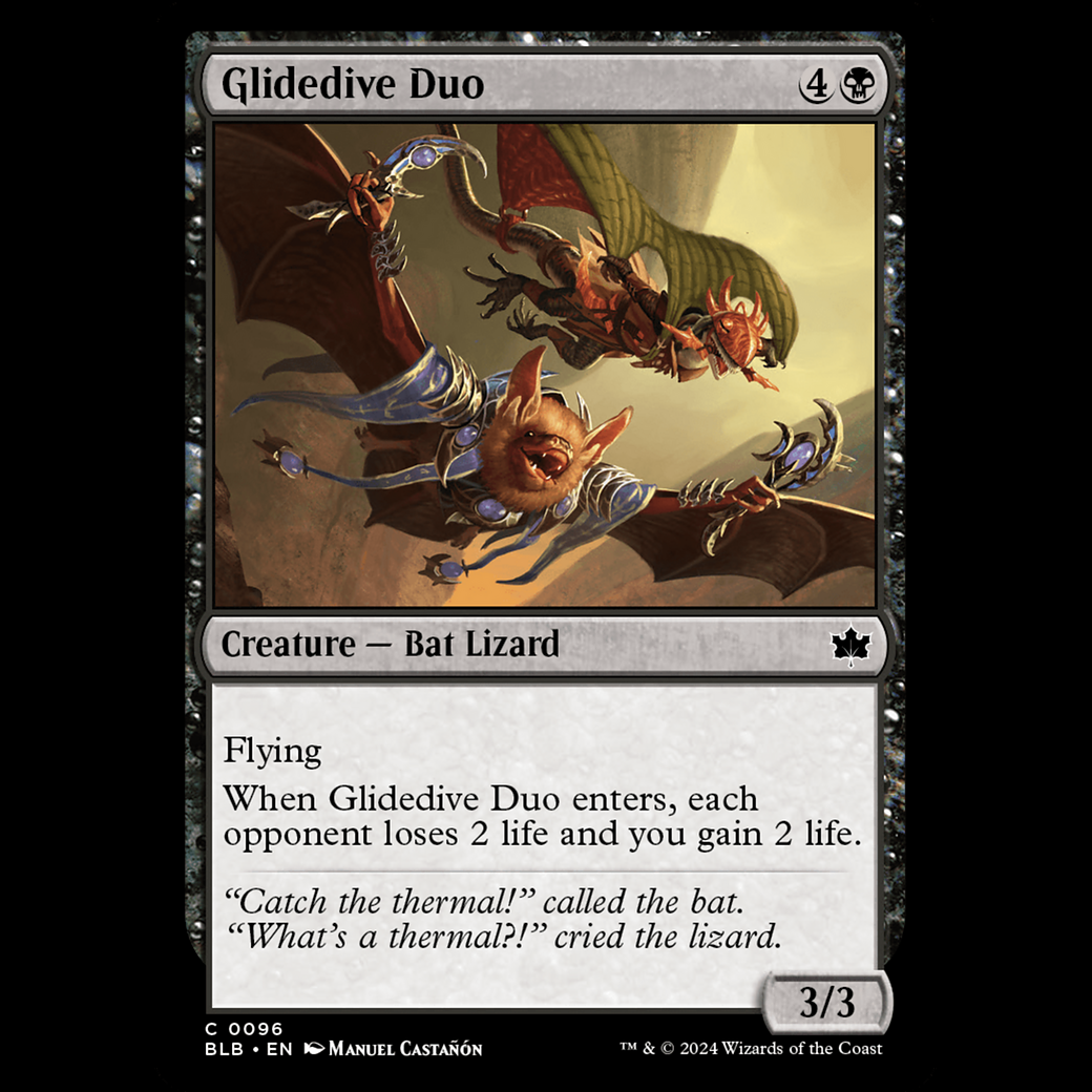 When Glidedive Duo enters, each opponent loses 2 life and you gain 2 life.
