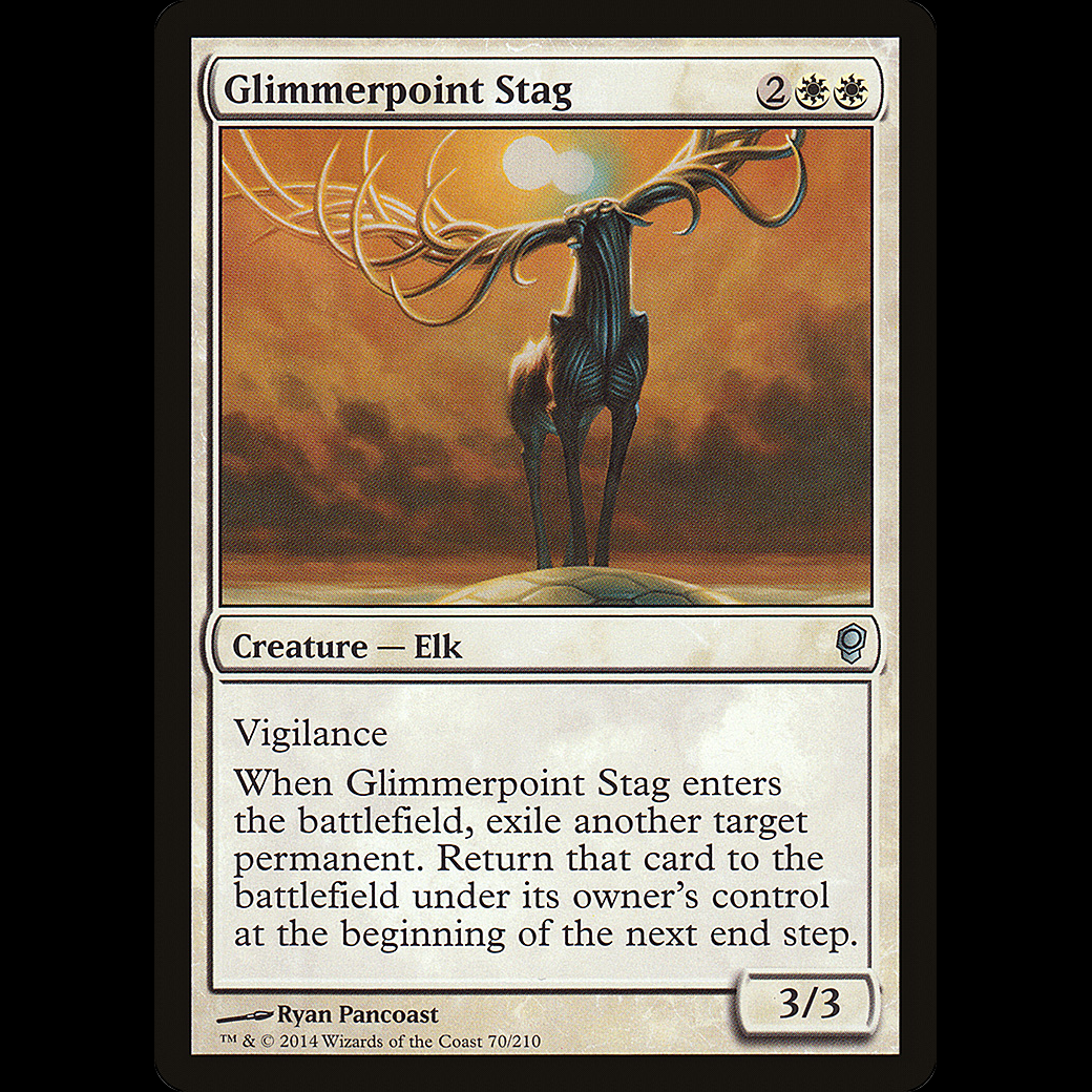When Glimmerpoint Stag enters the battlefield, exile another target permanent. Return that card to the battlefield under its owner's control at the beginning of the next end step.