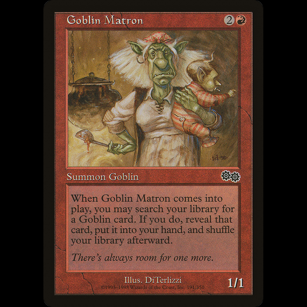 When Goblin Matron enters the battlefield, you may search your library for a Goblin card, reveal that card, put it into your hand, then shuffle.