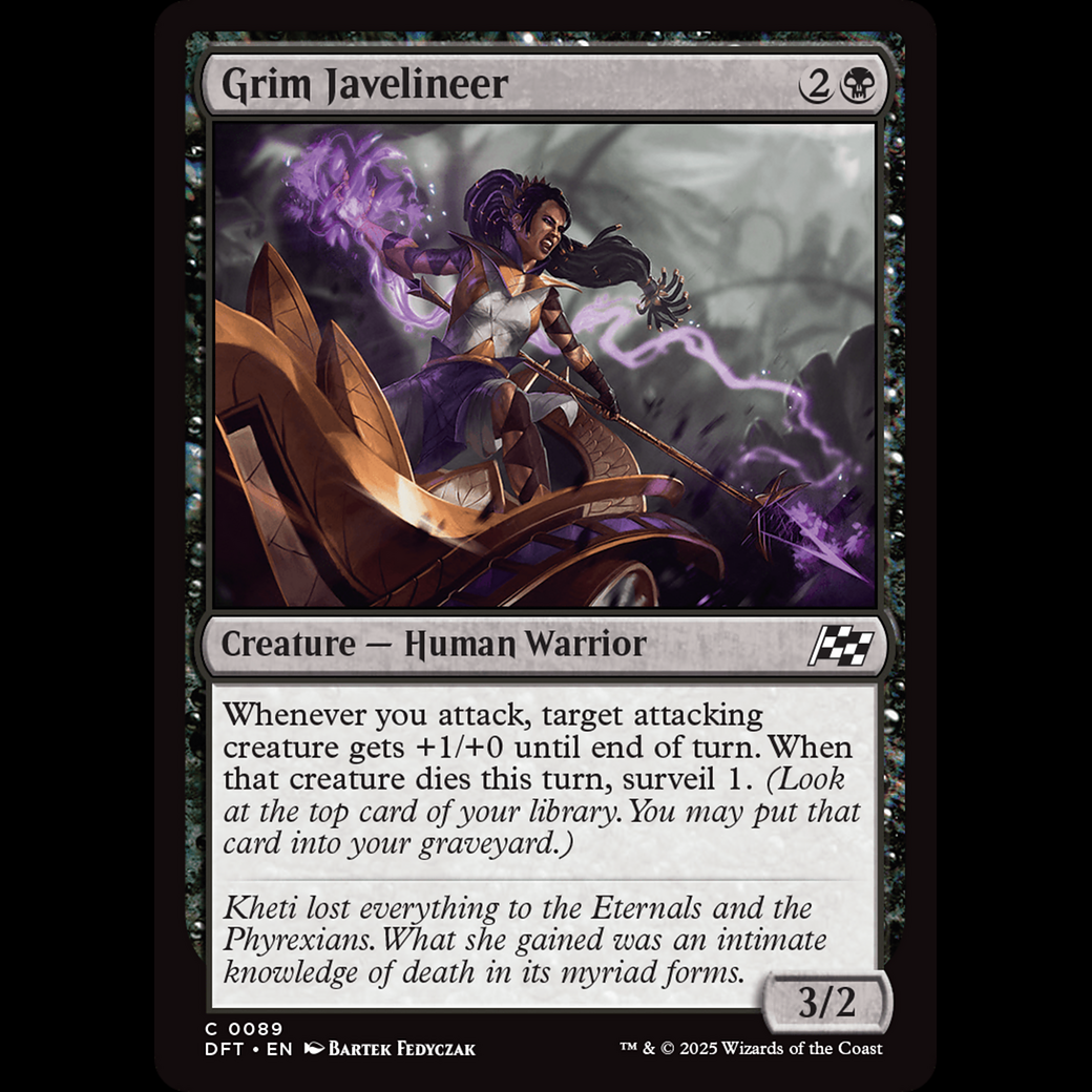 Whenever you attack, target attacking creature gets +1/+0 until end of turn. When that creature dies this turn, surveil 1. (Look at the top card of your library. You may put that card into your graveyard.)