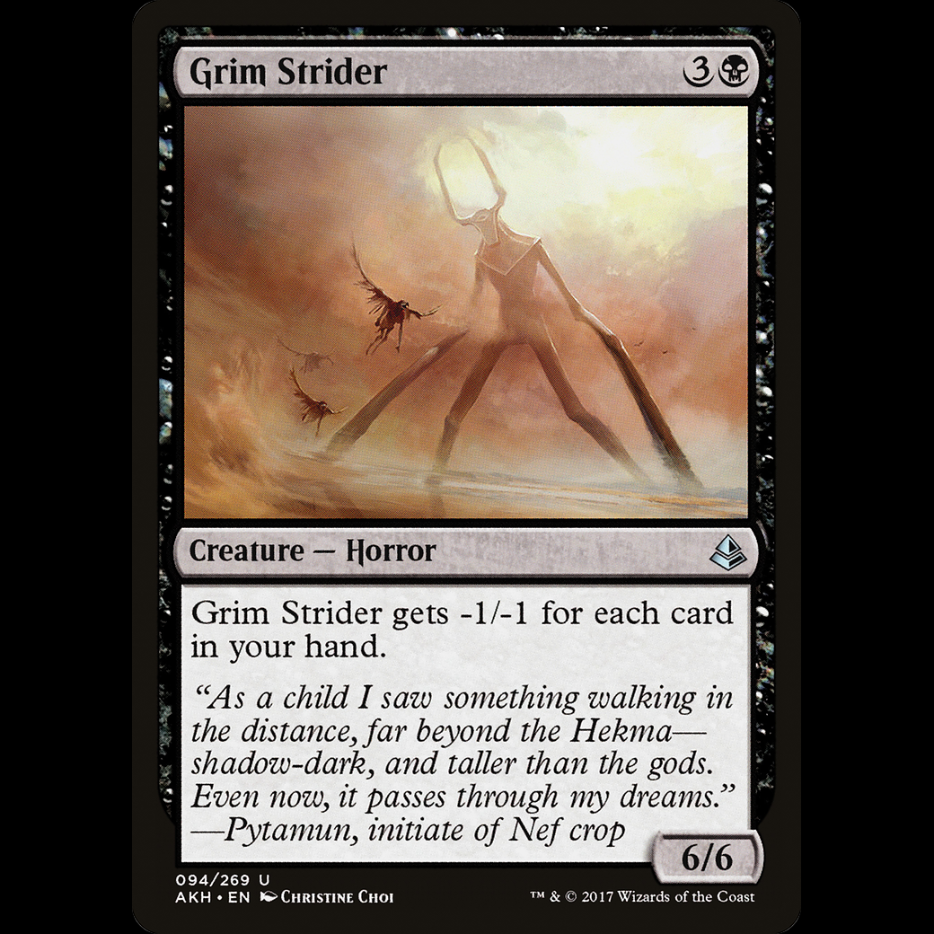 MTG Grim Strider AmonkhetGrim Strider gets -1/-1 for each card in your hand.