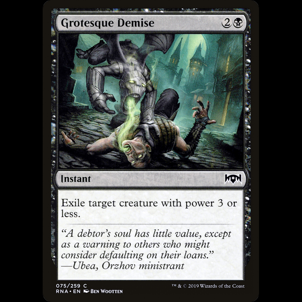 MTG Grotesque Demise Ravnica Allegiance rna#75Exile target creature with power 3 or less.