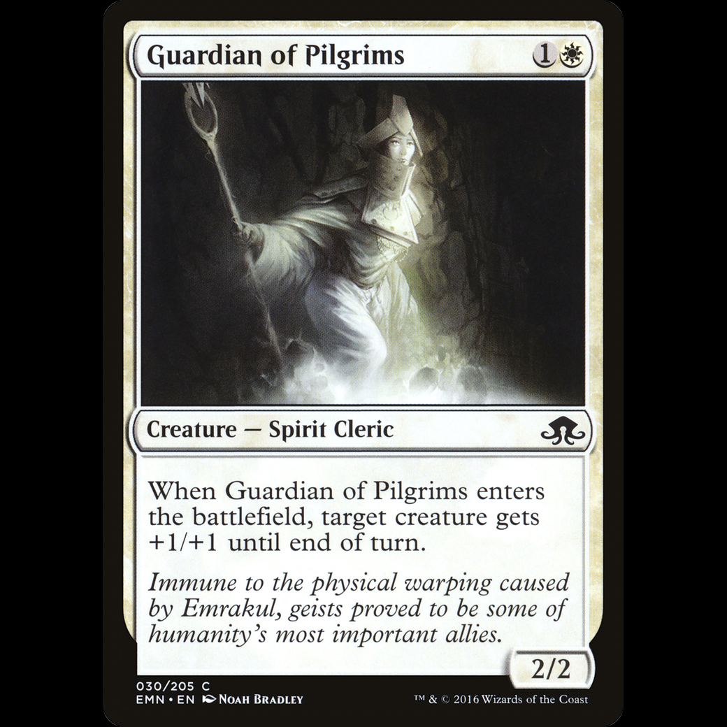 When Guardian of Pilgrims enters the battlefield, target creature gets +1/+1 until end of turn.