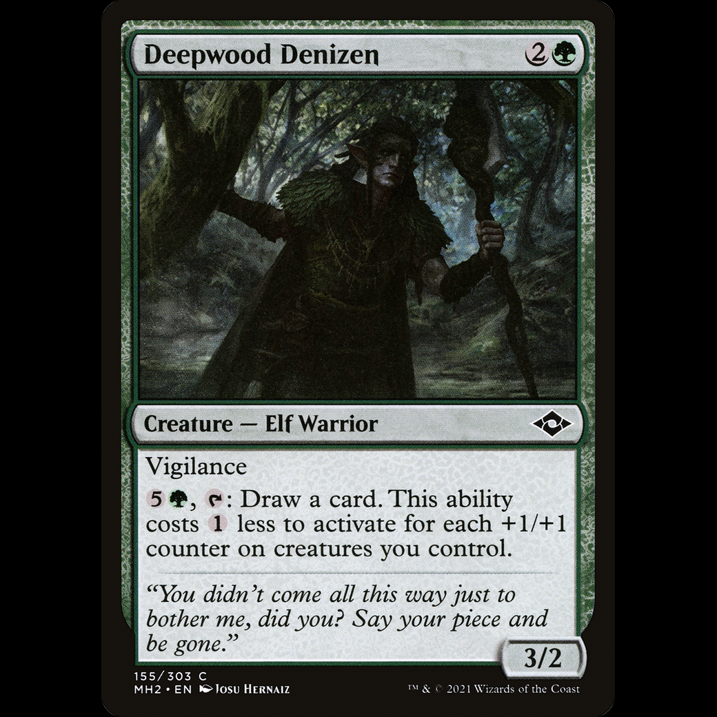MTG Habitante de Deepwood (Deepwood Denizen) Modern Horizons 2 mh2#155 Vigilance (Attacking doesn't cause this creature to tap.) , : Draw a card. This ability costs less to activate for each +1/+1 counter on creatures you control.