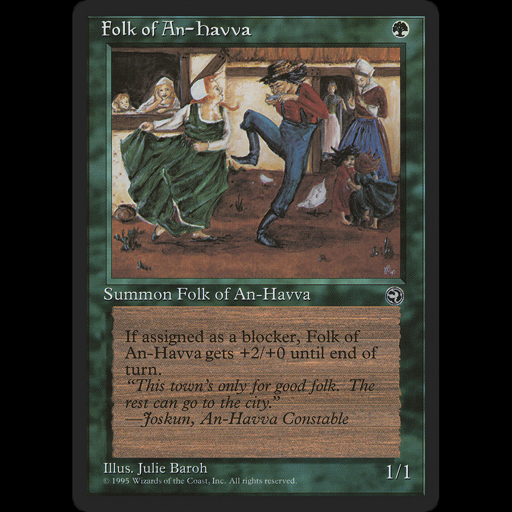 Whenever Folk of An-Havva blocks, it gets +2/+0 until end of turn.