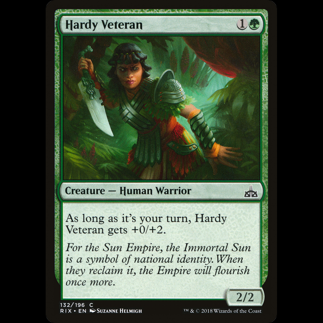 MTG Hardy Veteran Rivals of Ixalan rix#132As long as it's your turn, Hardy Veteran gets +0/+2.