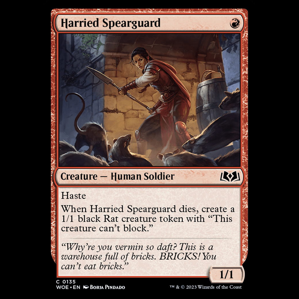 When Harried Spearguard dies, create a 1/1 black Rat creature token with "This creature can't block."