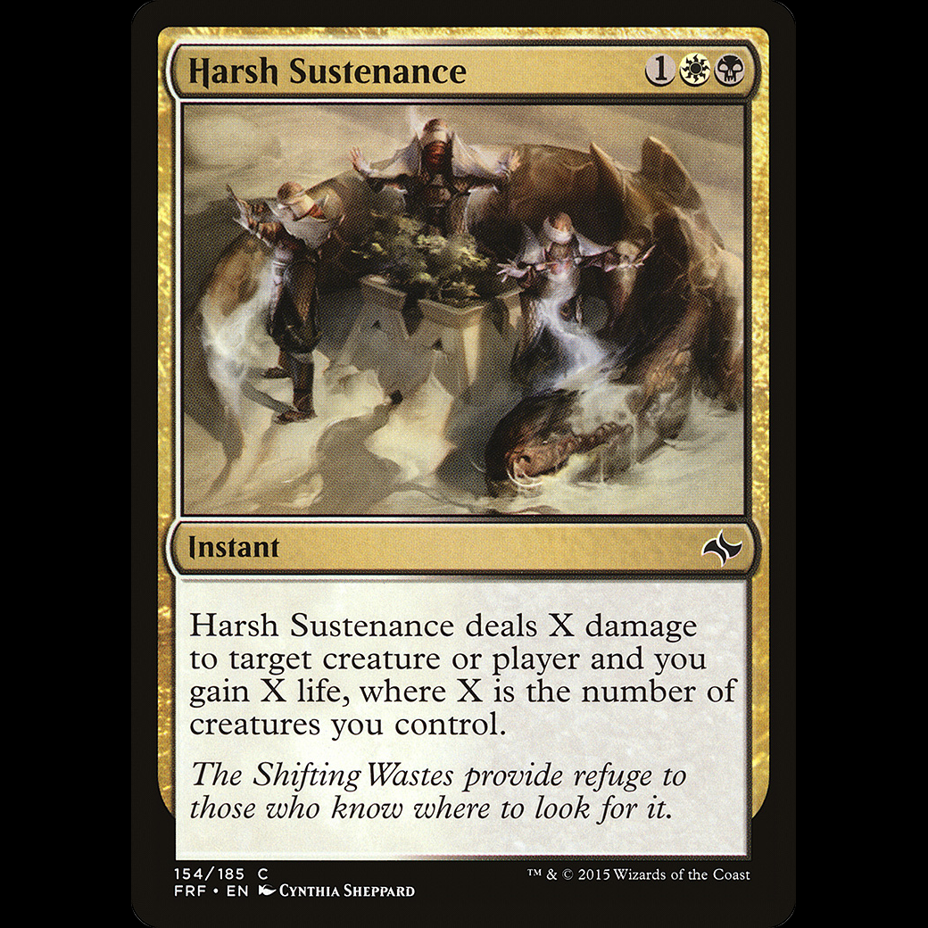 Harsh Sustenance deals X damage to any target and you gain X life, where X is the number of creatures you control.