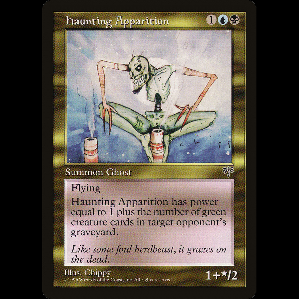 Haunting Apparition's power is equal to 1 plus the number of green creature cards in the chosen player's graveyard.