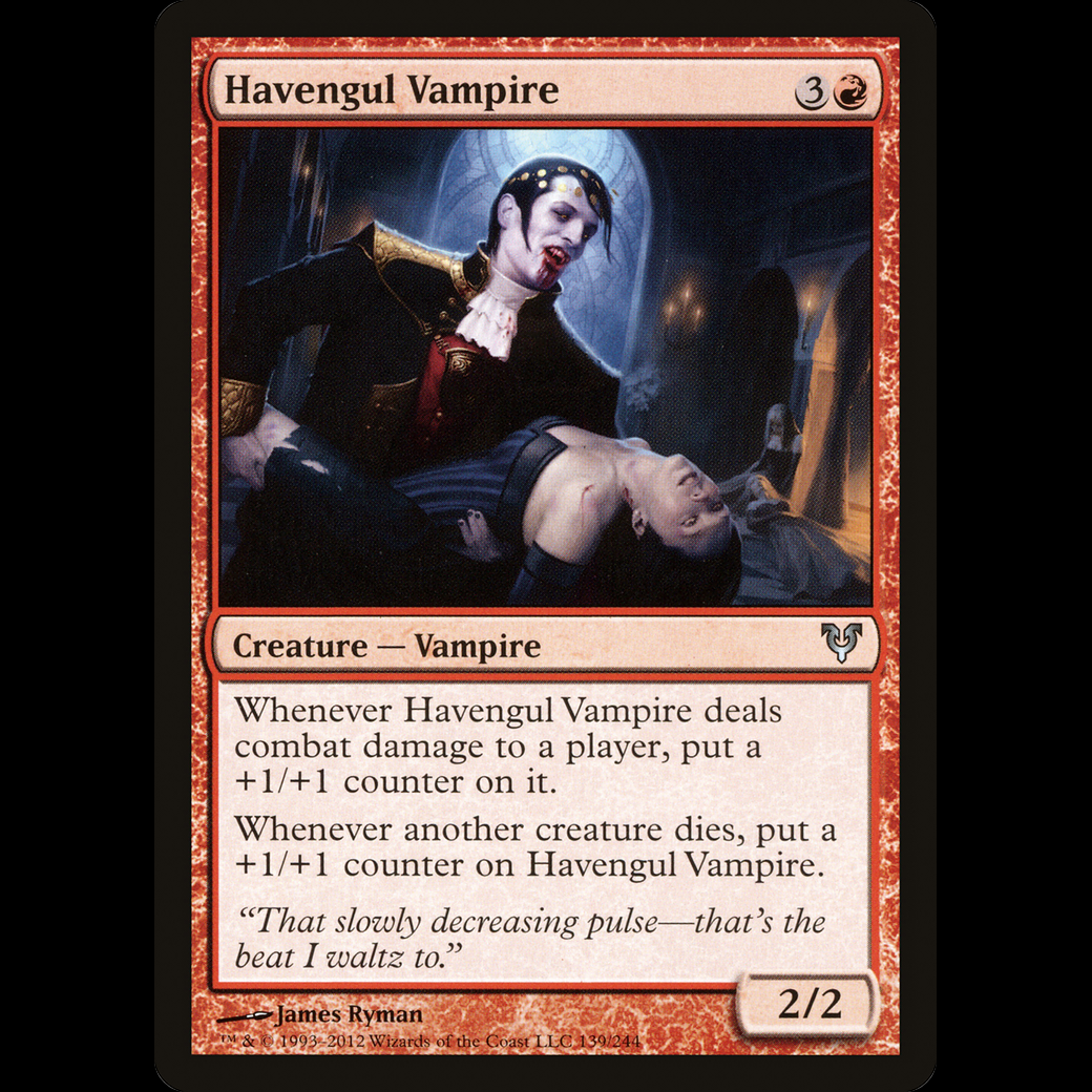 Whenever another creature dies, put a +1/+1 counter on Havengul Vampire.
