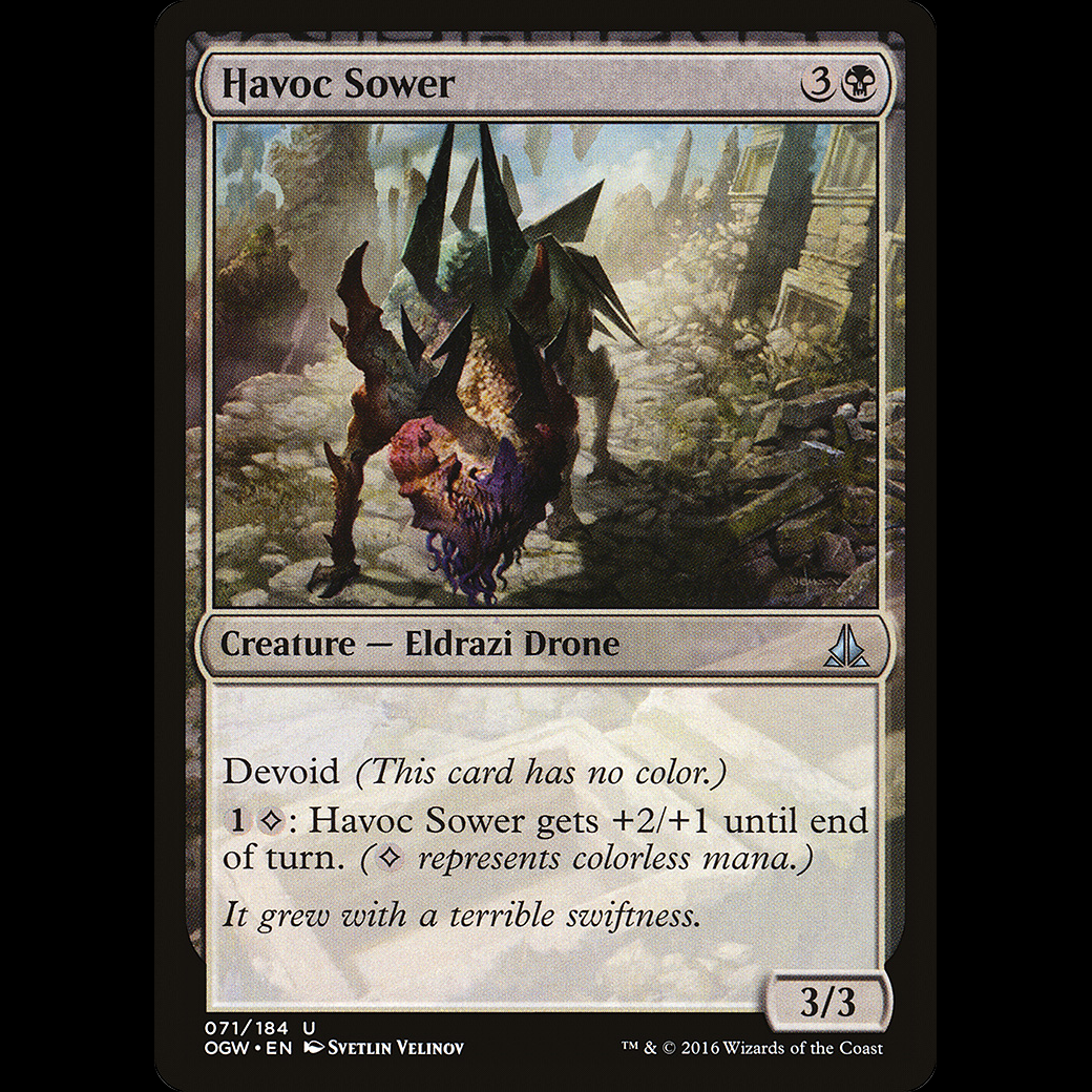 : Havoc Sower gets +2/+1 until end of turn. ( represents colorless mana.)