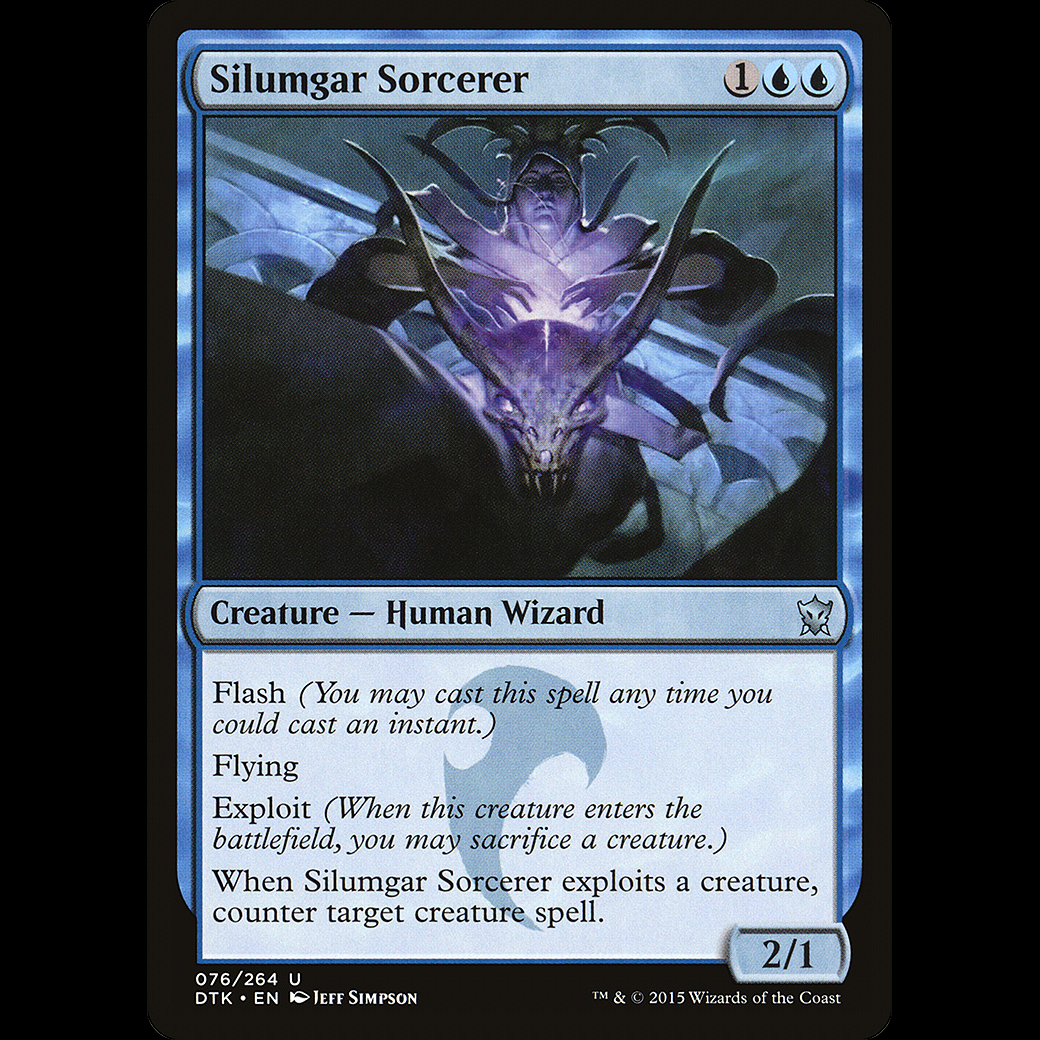 When Silumgar Sorcerer exploits a creature, counter target creature spell.