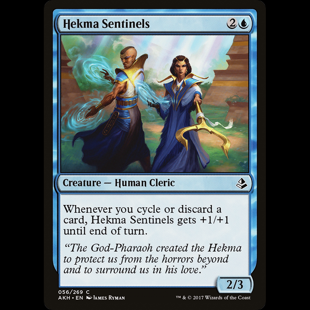 Whenever you cycle or discard a card, Hekma Sentinels gets +1/+1 until end of turn.
