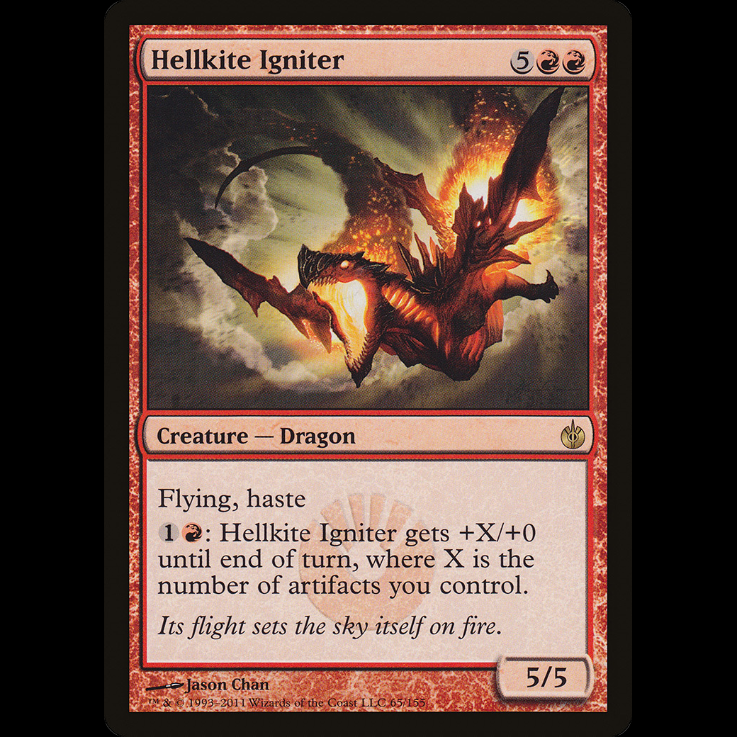 : Hellkite Igniter gets +X/+0 until end of turn, where X is the number of artifacts you control.