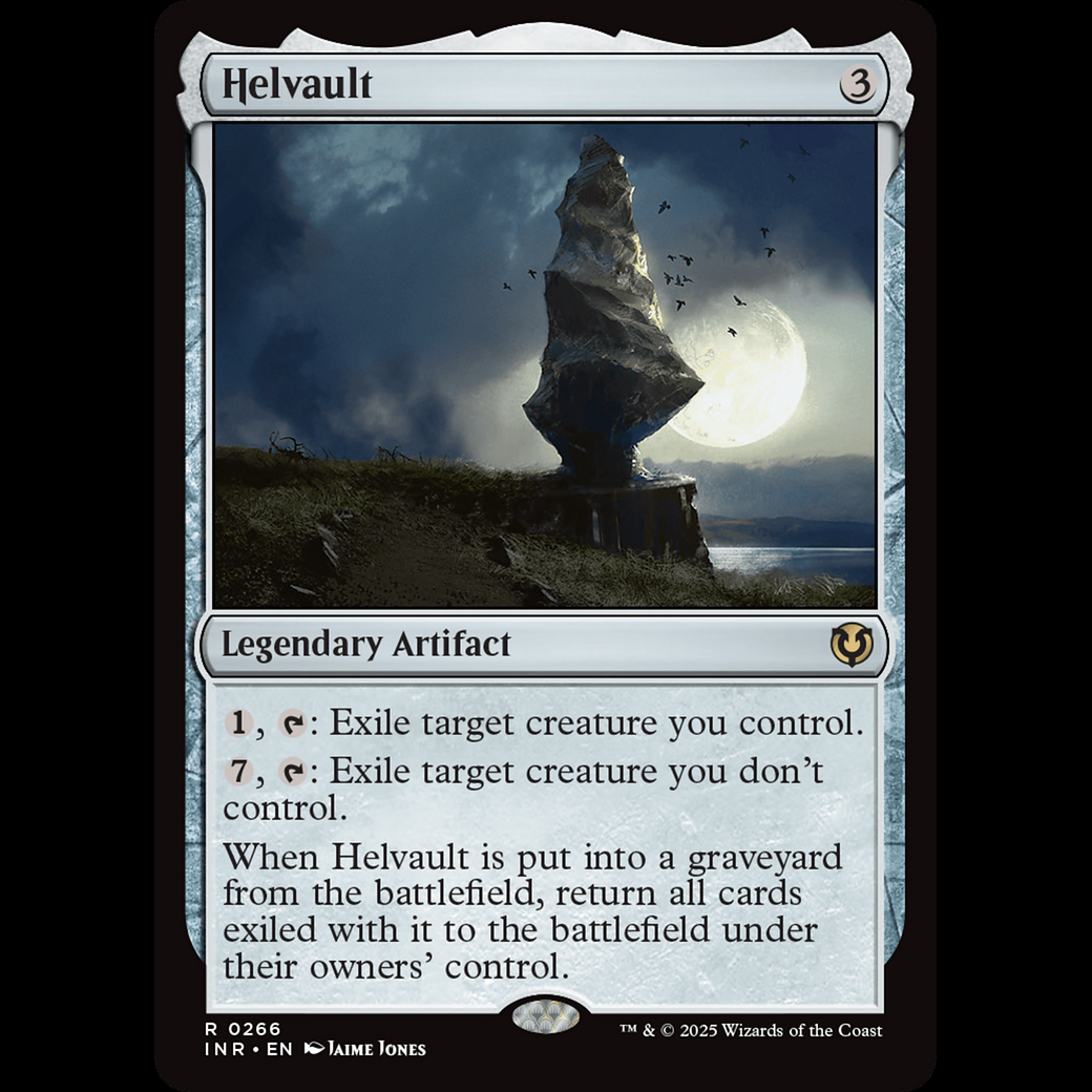 When Helvault is put into a graveyard from the battlefield, return all cards exiled with it to the battlefield under their owners' control.
