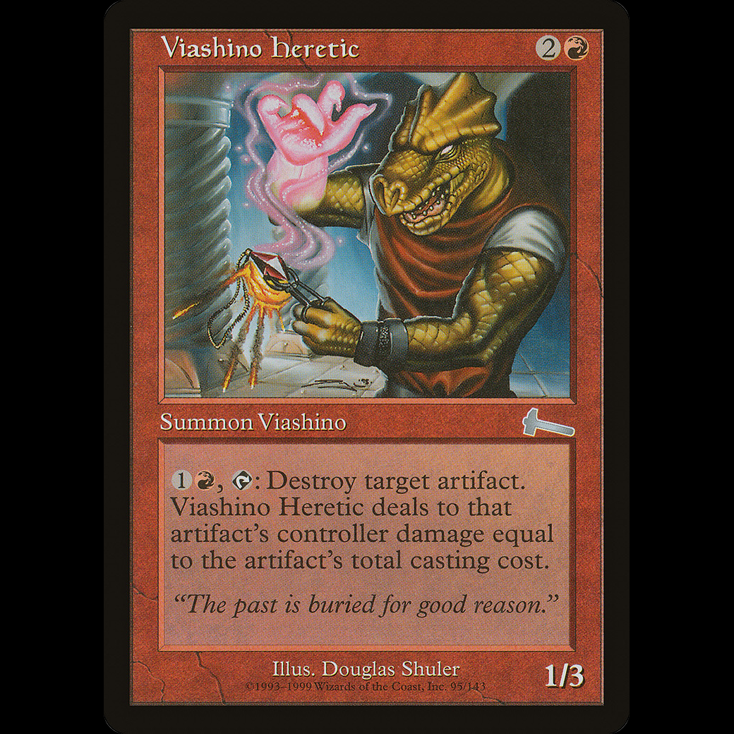 , : Destroy target artifact. Viashino Heretic deals damage to that artifact's controller equal to the artifact's mana value.