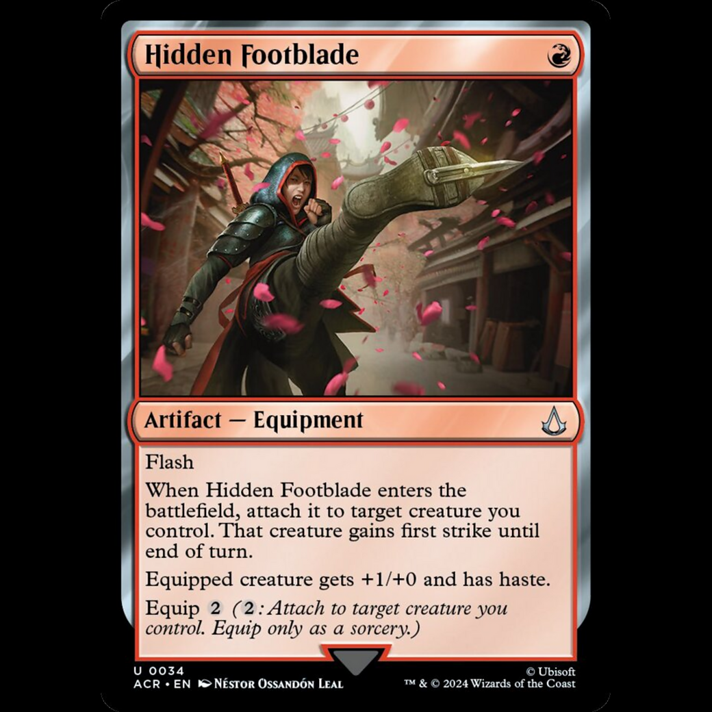 When Hidden Footblade enters the battlefield, attach it to target creature you control. That creature gains first strike until end of turn.