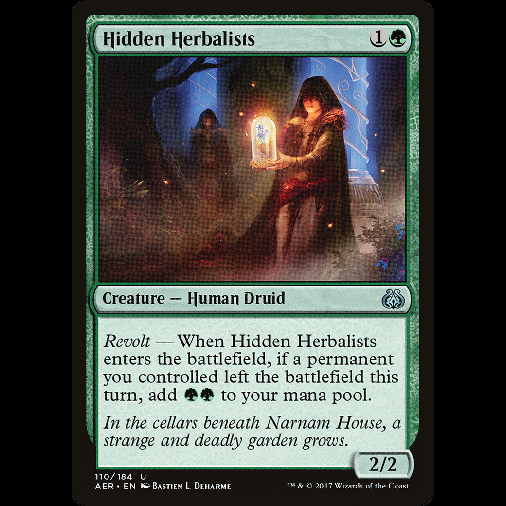 Revolt — When Hidden Herbalists enters the battlefield, if a permanent you controlled left the battlefield this turn, add .