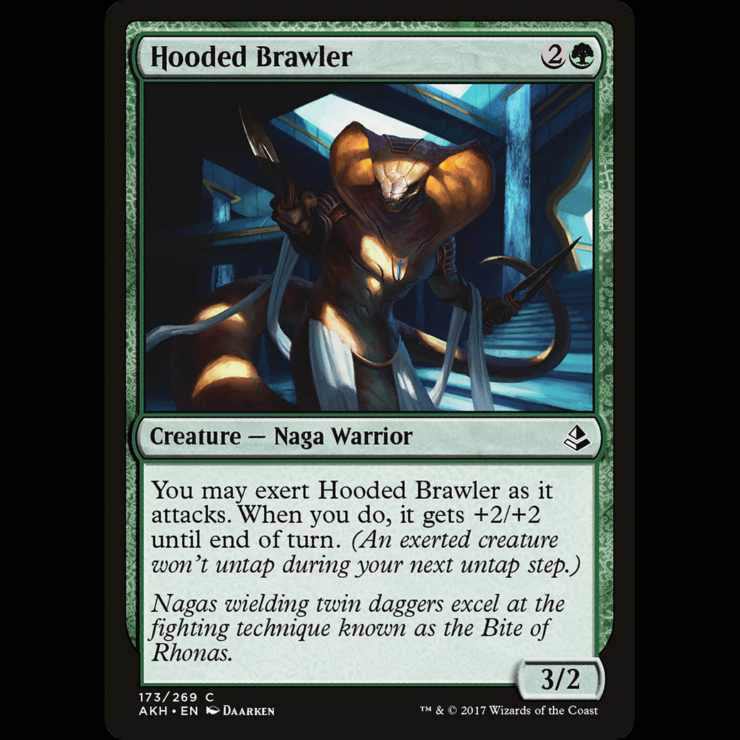 You may exert Hooded Brawler as it attacks. When you do, it gets +2/+2 until end of turn. (An exerted creature won't untap during your next untap step.)