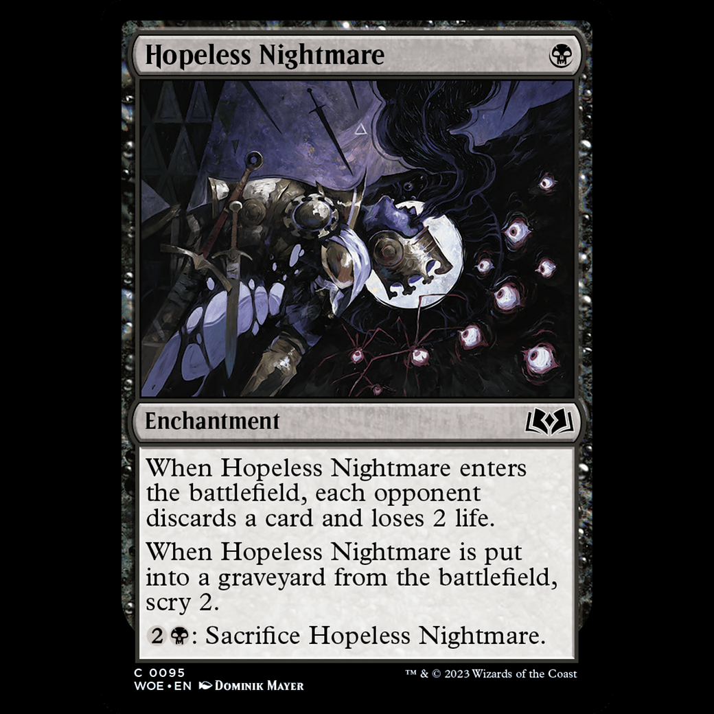 When Hopeless Nightmare is put into a graveyard from the battlefield, scry 2.